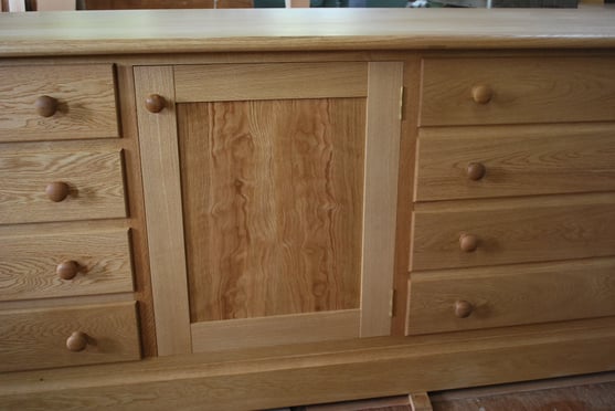 19世紀の前半にエンフィールド共同体で作られた小型のカップボードです。他の箱物家具同様、オリジナルはマツ材が使われましたが、この復元ではナラ材を使い、サイズもやや大きめに変更してあります。