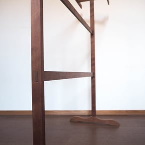 クロス・ラックとかドライング・ラックと言われるものです。 布類をこれに掛けて使っていました。極端に部材が細く軽いです。それぞれの貫はすべて通しホゾで、割りクサビでとめてあります。