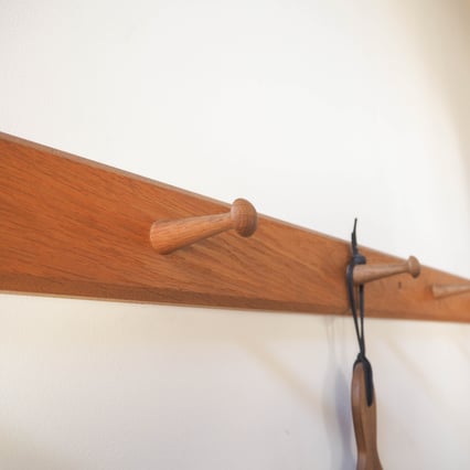 シェーカーのほとんどの住空間に、ペグ(つまみ)が付いた板が取り付けられていました。部屋により高さを変え、集会が終わった後、椅子が掛けられ、廊下ではキャンドル・スタンドを掛け、キッチンや作業場では、道具を掛けました。 ペグボードが取り付けられた空間は静謐間が漂います。